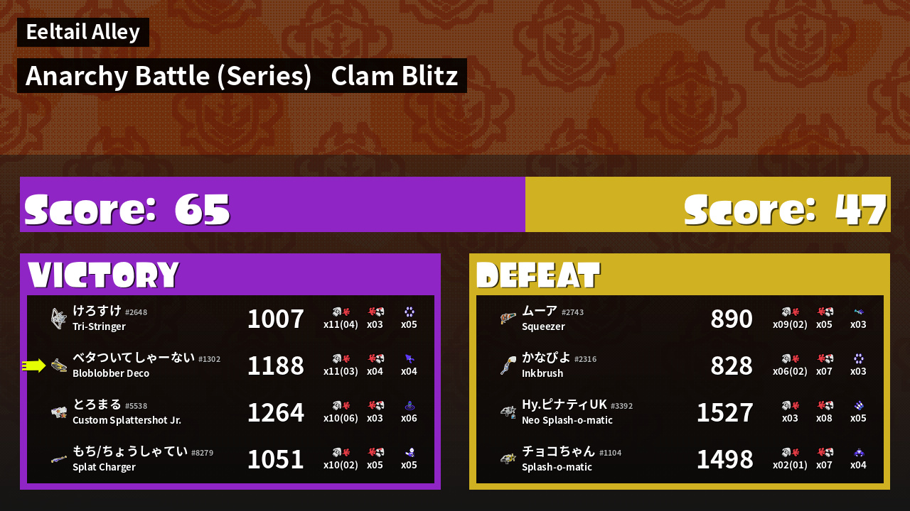 | Mode | Clam Blitz - Anarchy Battle (Series) | ||