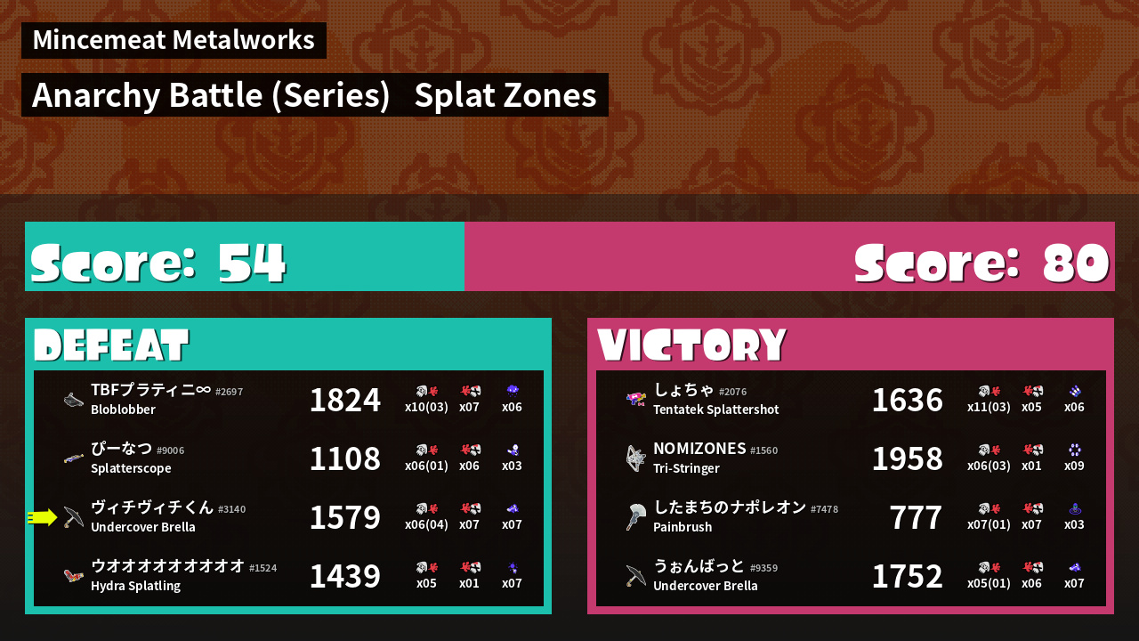 | Mode | Splat Zones - Anarchy Battle (Series) | ||