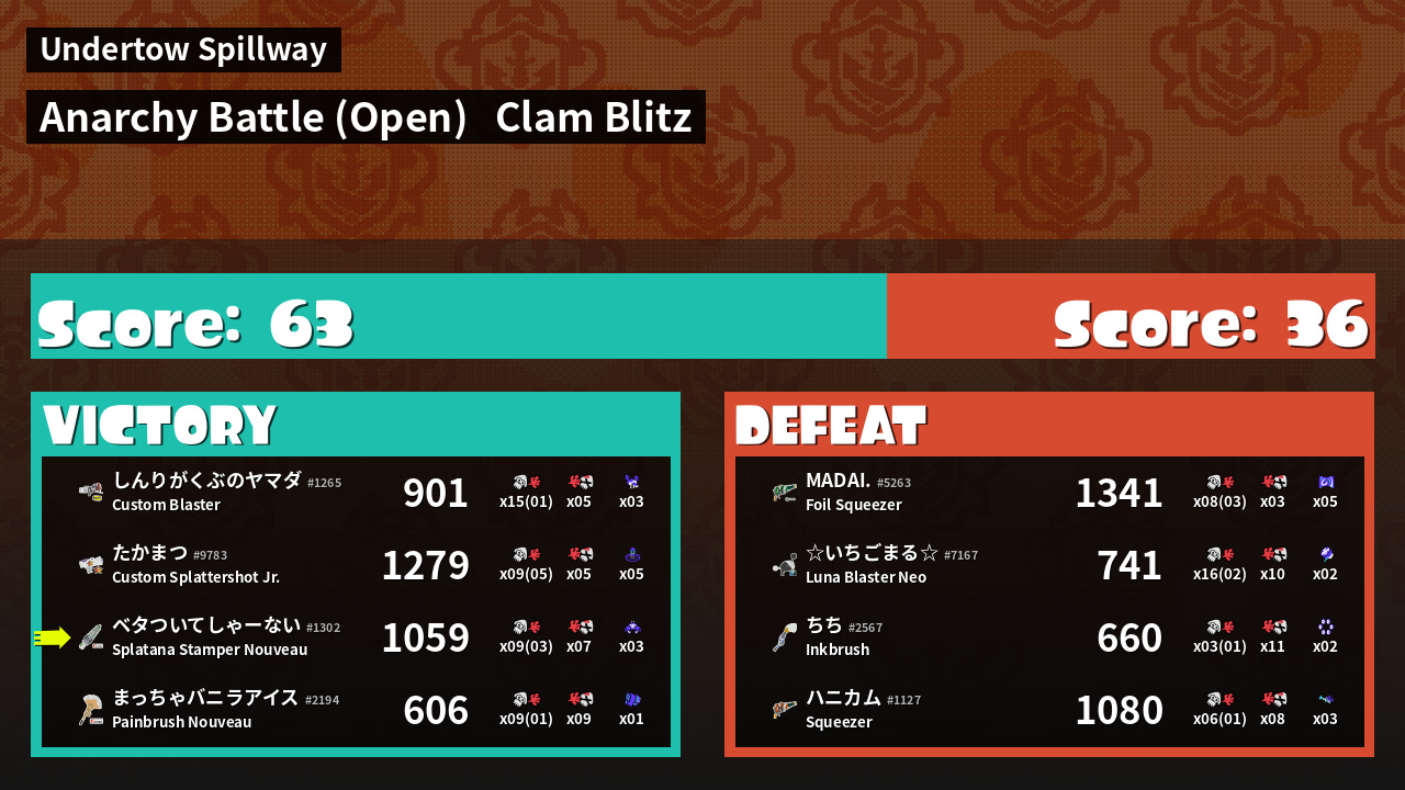 | Mode | Clam Blitz - Anarchy Battle (Open) | ||