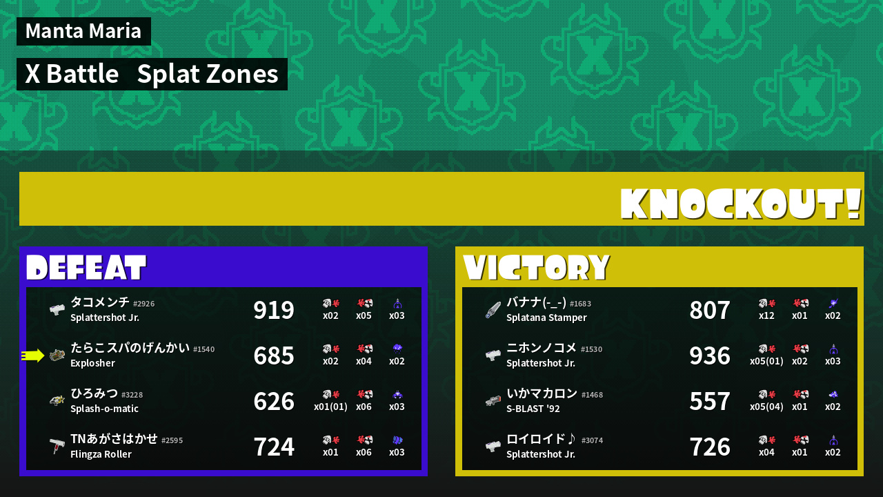 | Medals | #1 Overall Splatter #1 Enemy Splatter First Splat! | ||