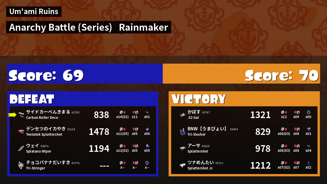 | Weapon | Carbon Roller Deco ( Burst Bomb / Trizooka) | ||