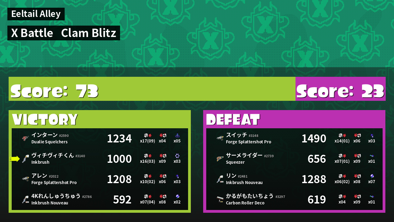| Medals | #1 Score Booster #1 Enemy Splatter #1 Clam Stopper | ||
