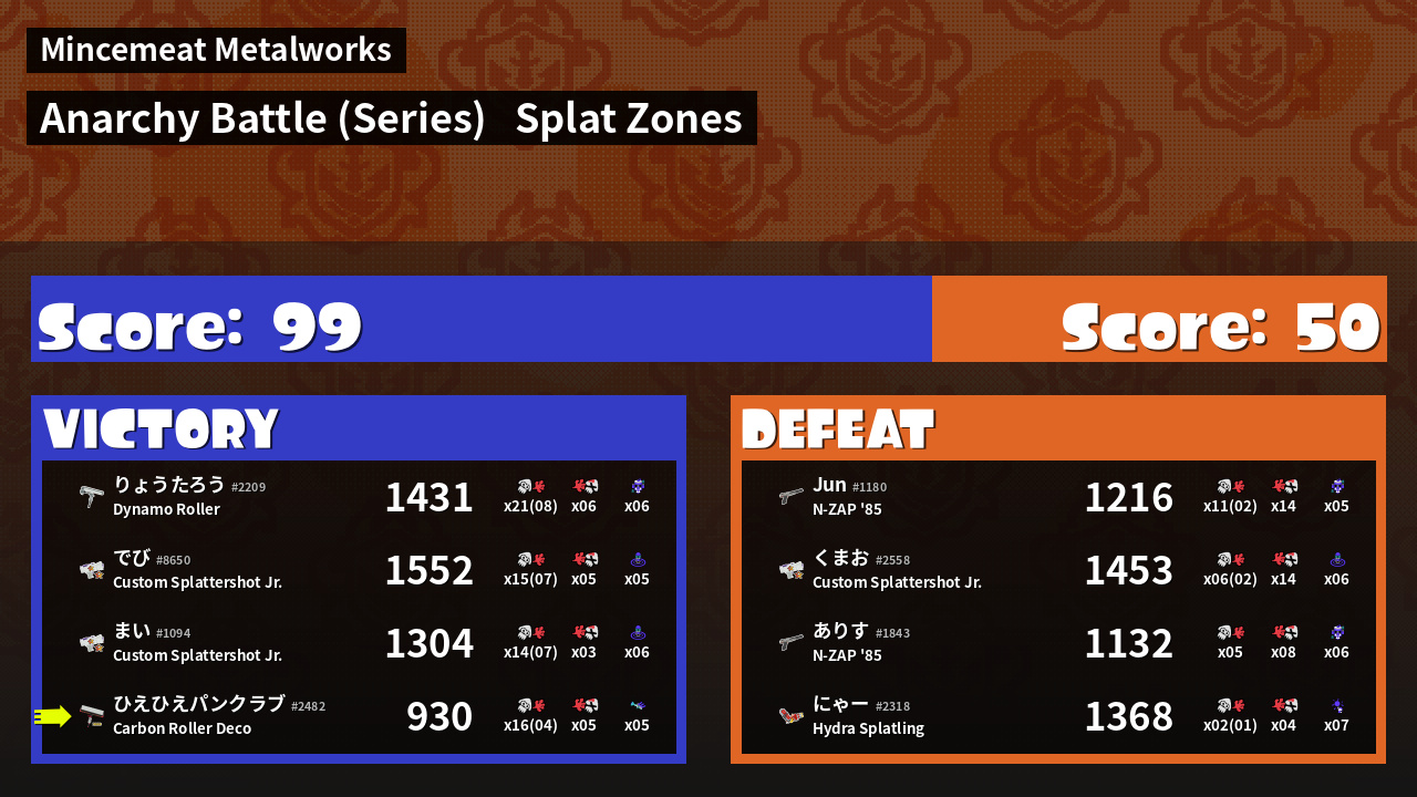 | Mode | Splat Zones - Anarchy Battle (Series) | ||