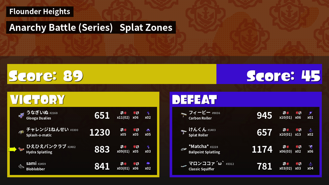| Mode | Splat Zones - Anarchy Battle (Series) | ||