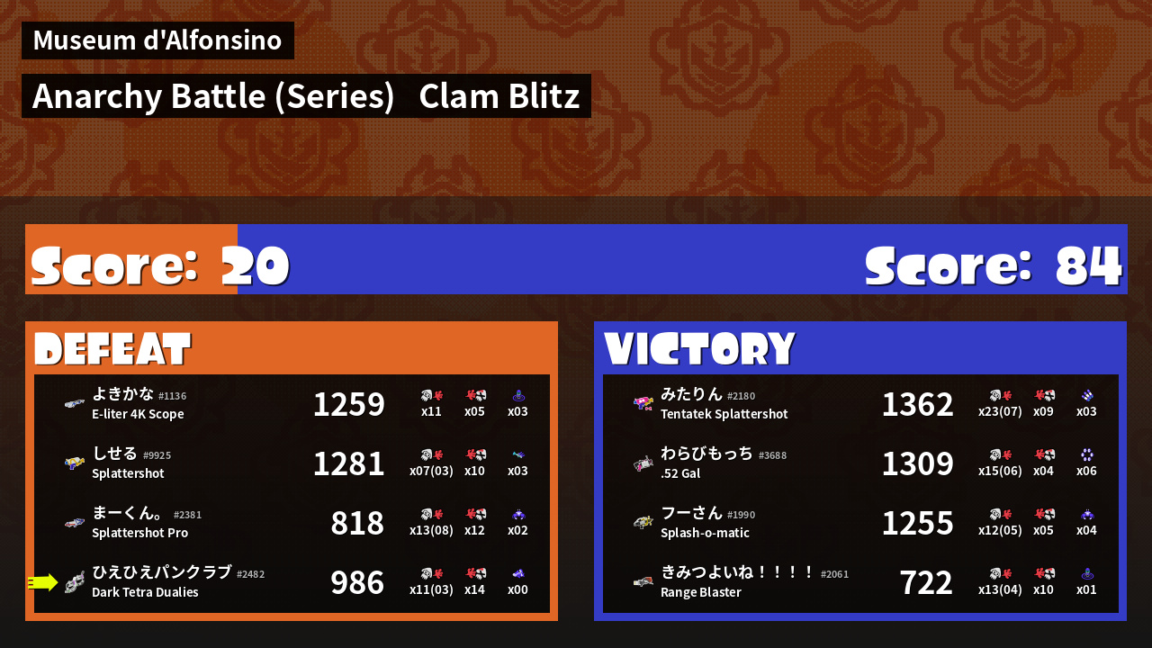 | Mode | Clam Blitz - Anarchy Battle (Series) | ||