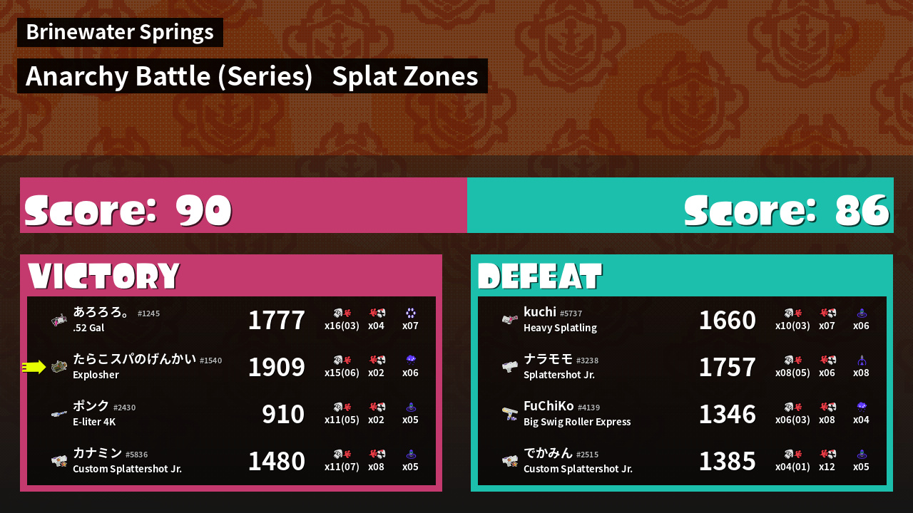 | Mode | Splat Zones - Anarchy Battle (Series) | ||
