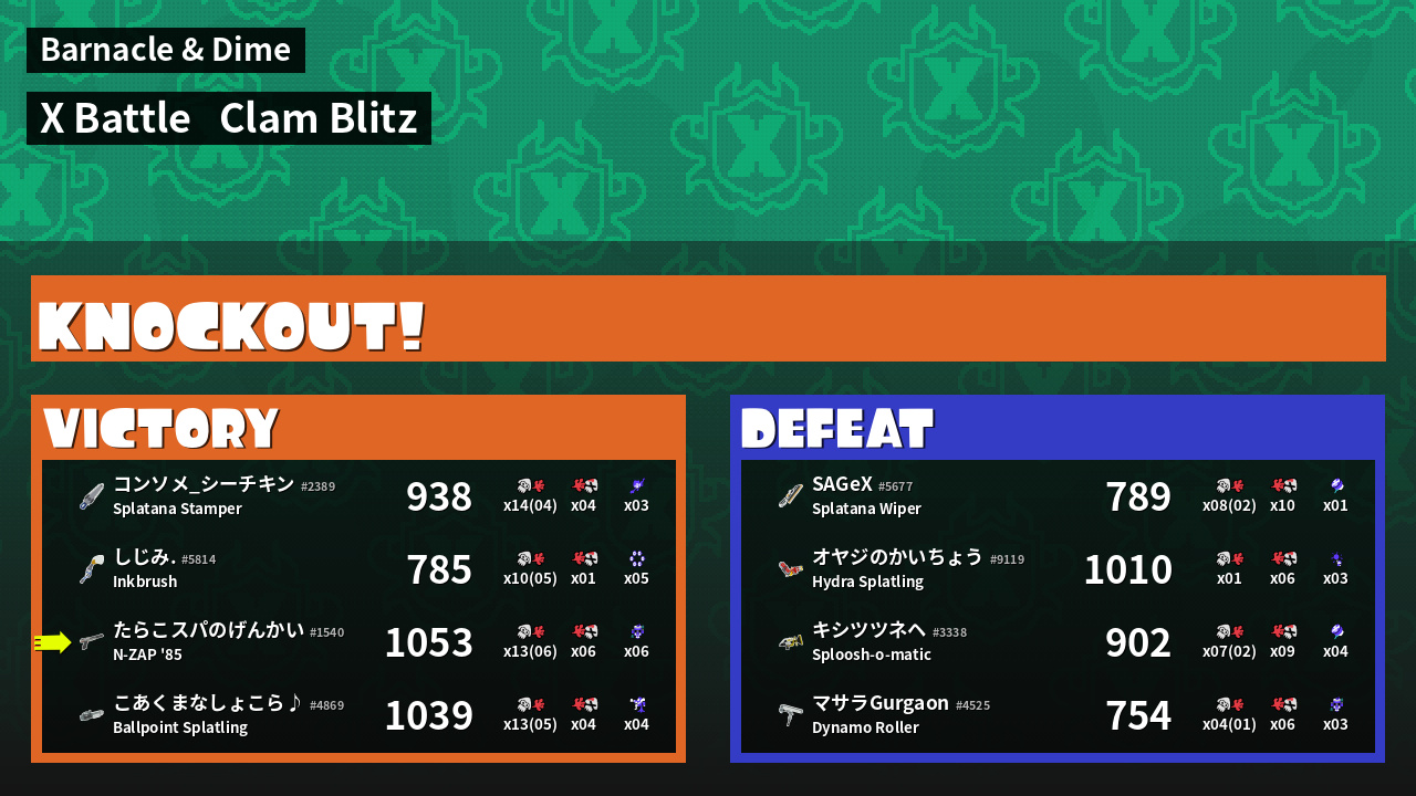 | Mode | Clam Blitz - X Battle | ||