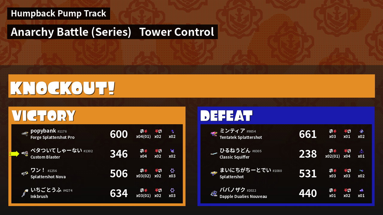 | Medals | #1 Overall Splatter Record-Score Setter #1 Super Jump Spot | ||