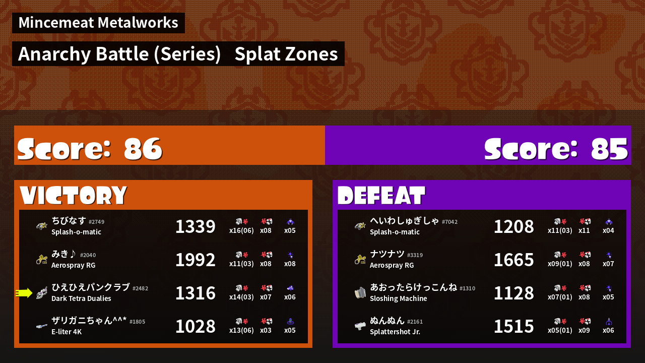 | Mode | Splat Zones - Anarchy Battle (Series) | ||