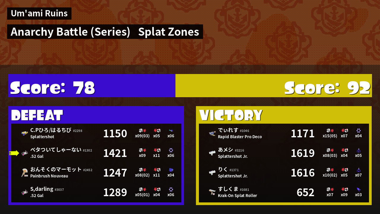 | Mode | Splat Zones - Anarchy Battle (Series) | ||