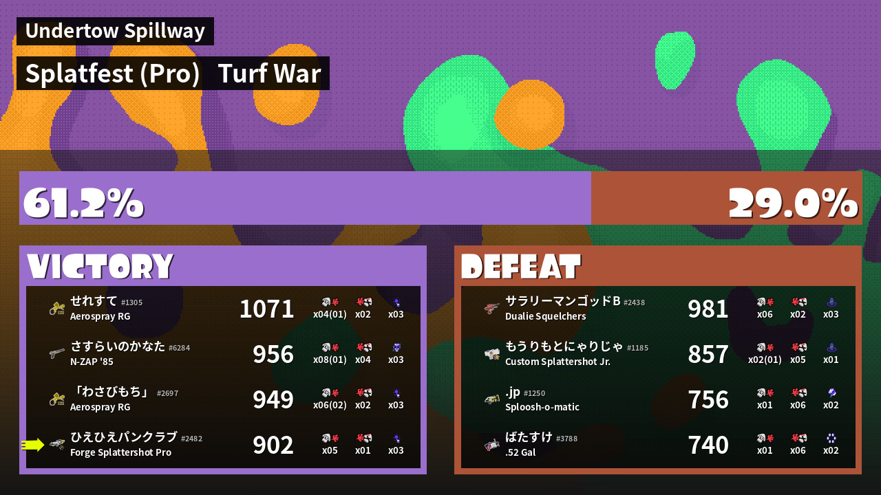 | Mode | Turf War - Splatfest (Pro) | ||