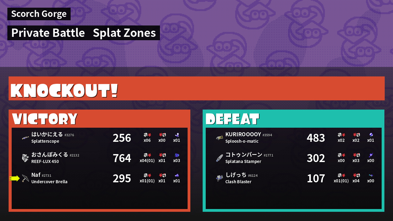 | Mode | Splat Zones - Private Battle | ||