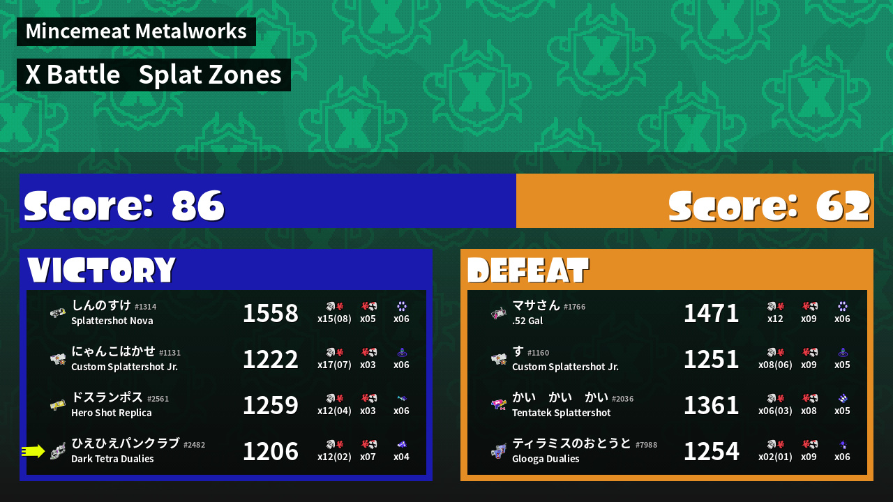 | Mode | Splat Zones - X Battle | ||