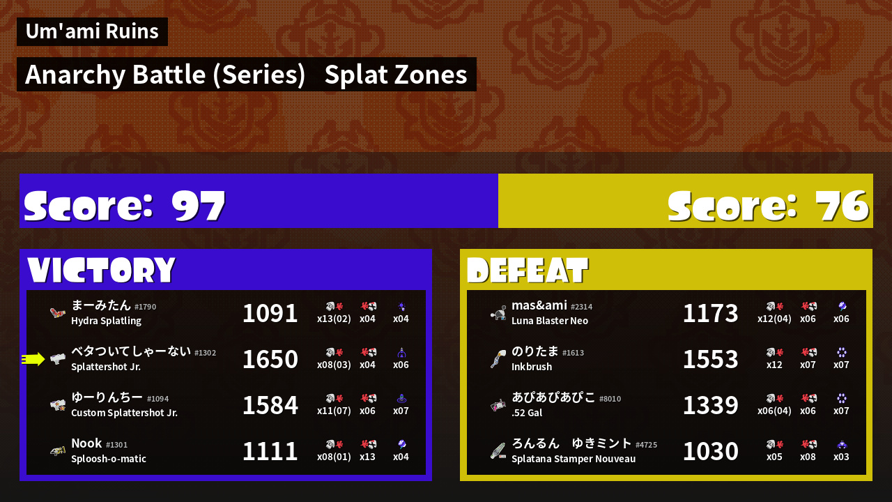 | Mode | Splat Zones - Anarchy Battle (Series) | ||