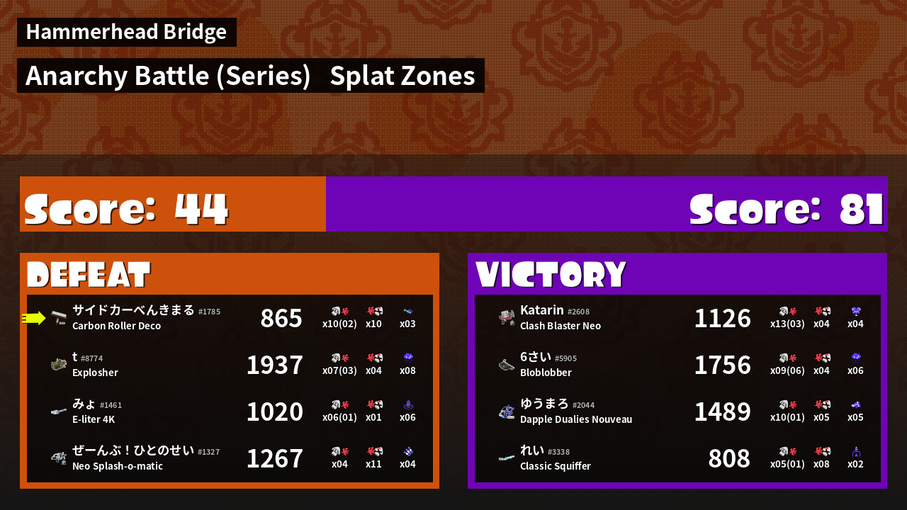 | Mode | Splat Zones - Anarchy Battle (Series) | ||