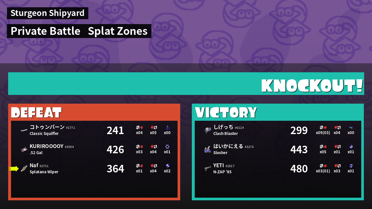 | Mode | Splat Zones - Private Battle | ||