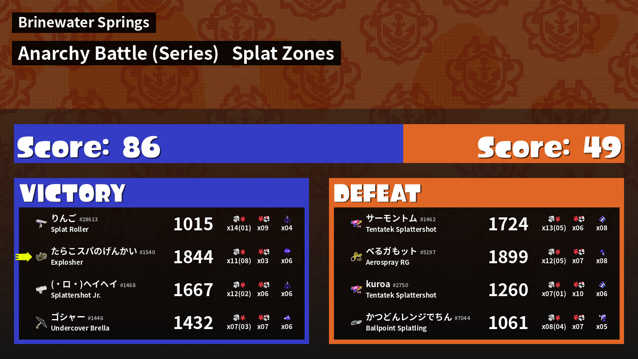 | Mode | Splat Zones - Anarchy Battle (Series) | ||