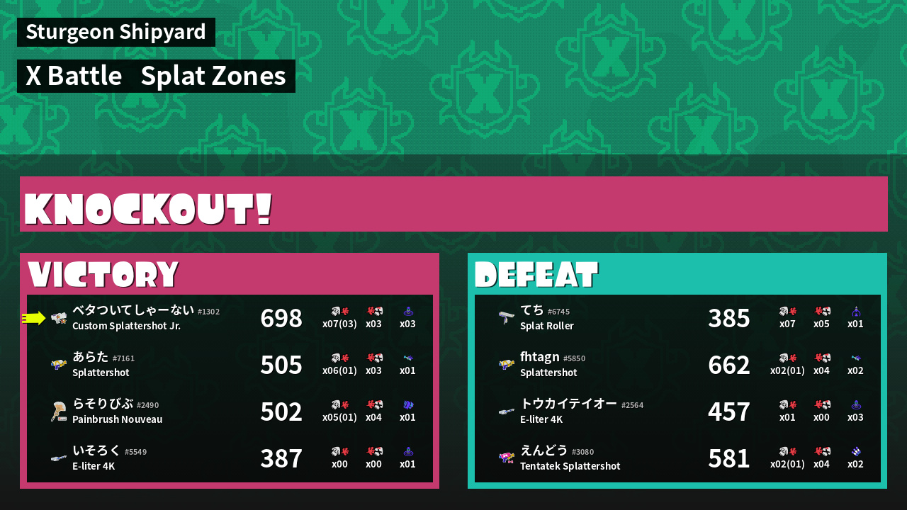 | Medals | #1 Overall Splatter #1 Splat Zone Inker #1 Splat Zone Guard | ||