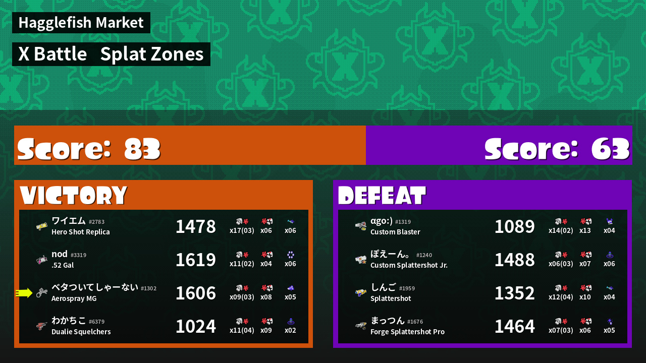 | Mode | Splat Zones - X Battle | ||