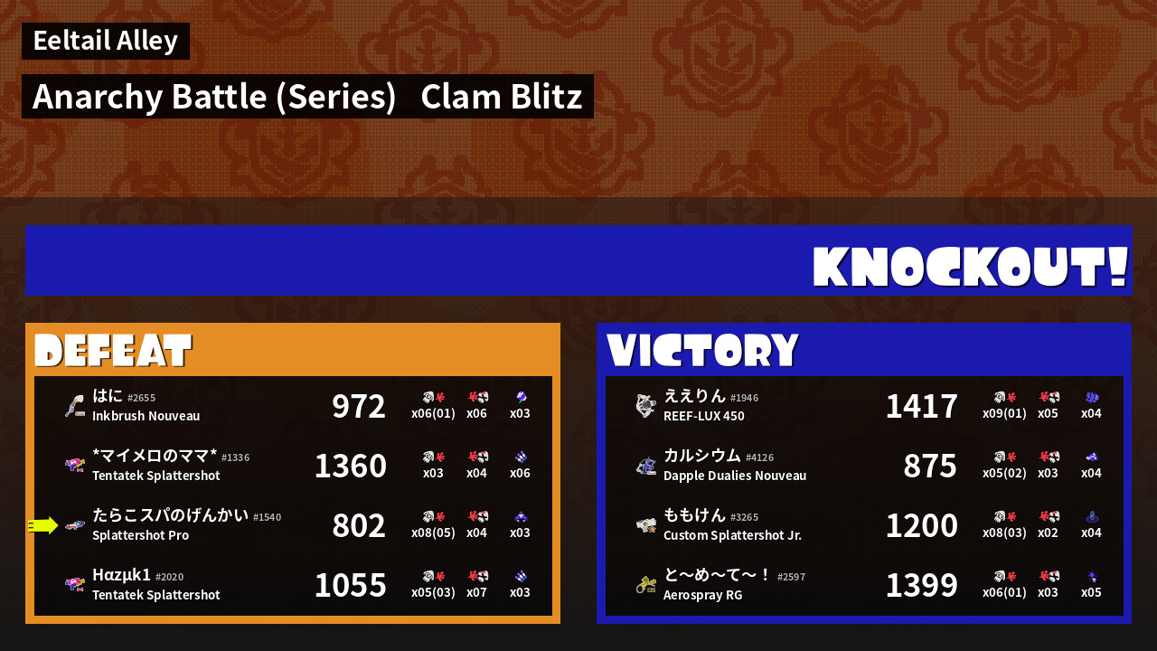 | Mode | Clam Blitz - Anarchy Battle (Series) | ||
