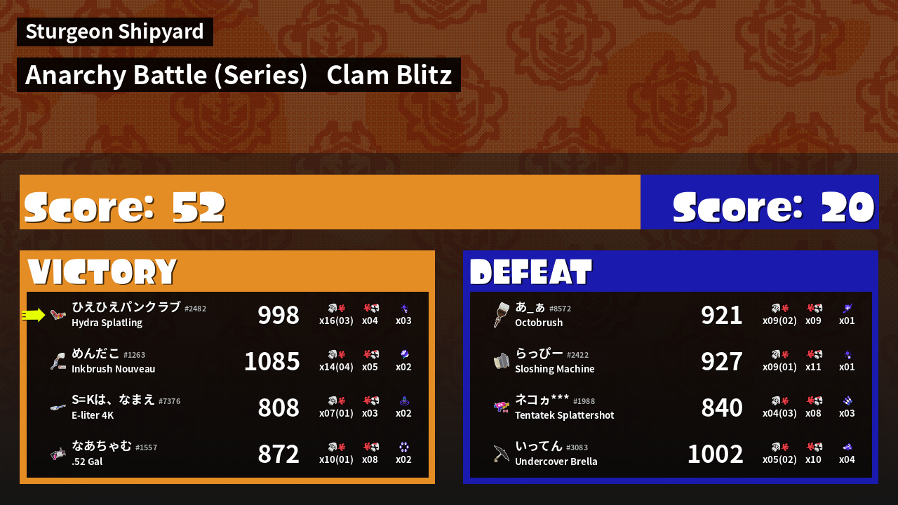| Mode | Clam Blitz - Anarchy Battle (Series) | ||