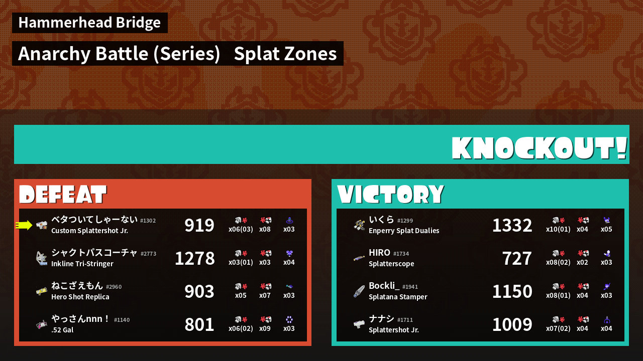 | Mode | Splat Zones - Anarchy Battle (Series) | ||