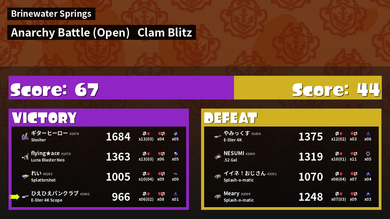 | Mode | Clam Blitz - Anarchy Battle (Open) | ||