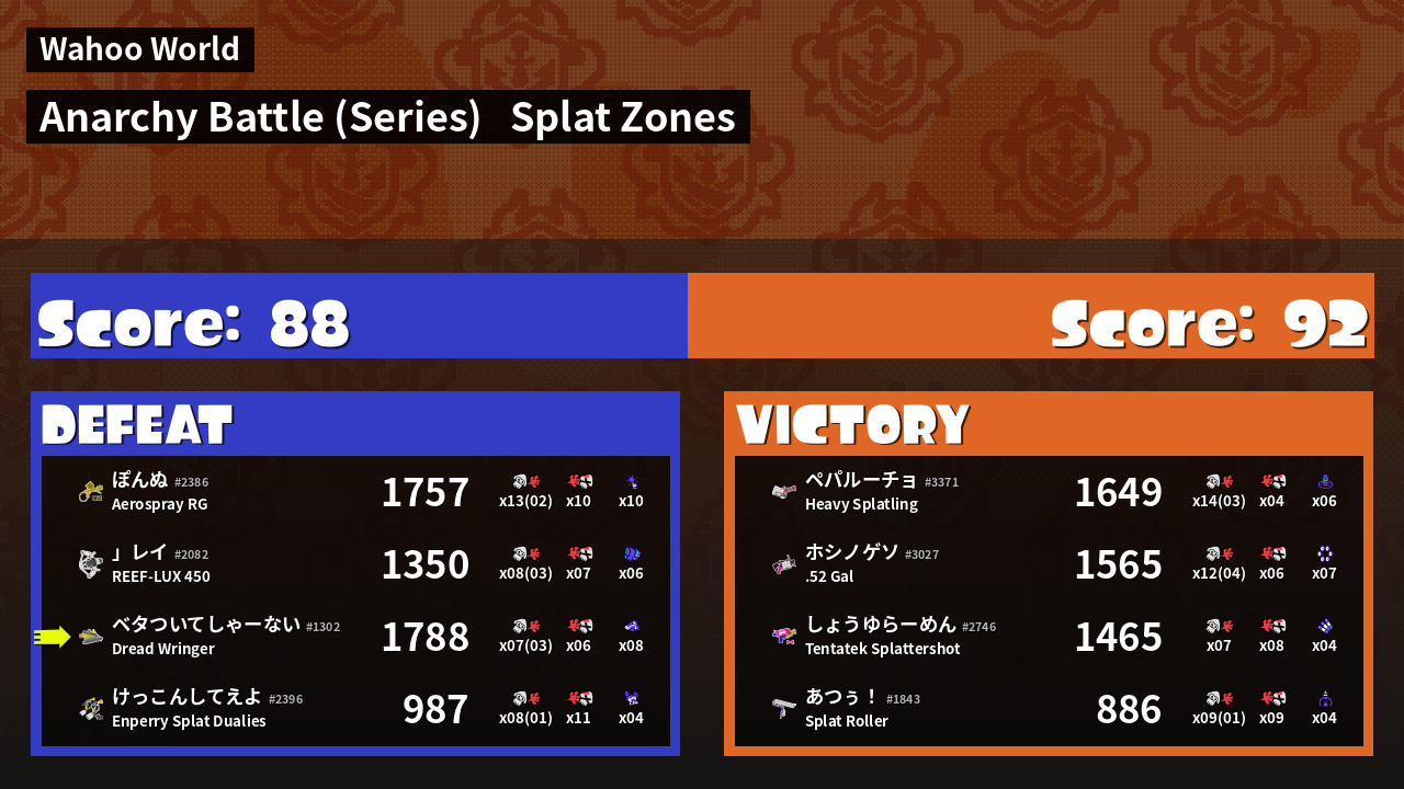 | Mode | Splat Zones - Anarchy Battle (Series) | ||