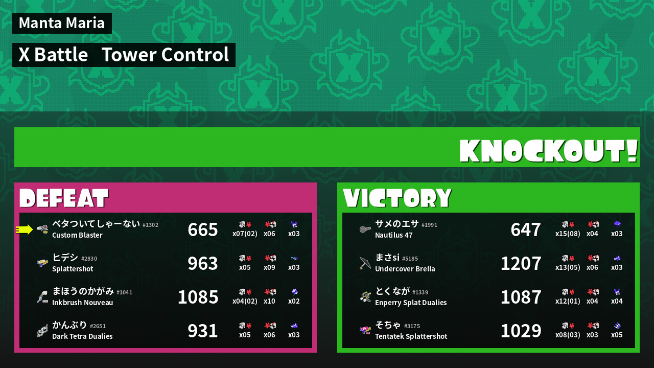 | Mode | Tower Control - X Battle | ||