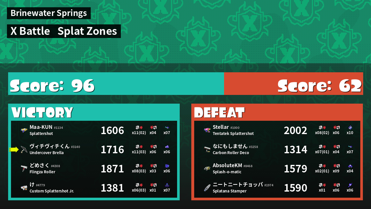| Medals | #1 Overall Splatter #1 Splat Zone Guard #1 Splat Assister | ||