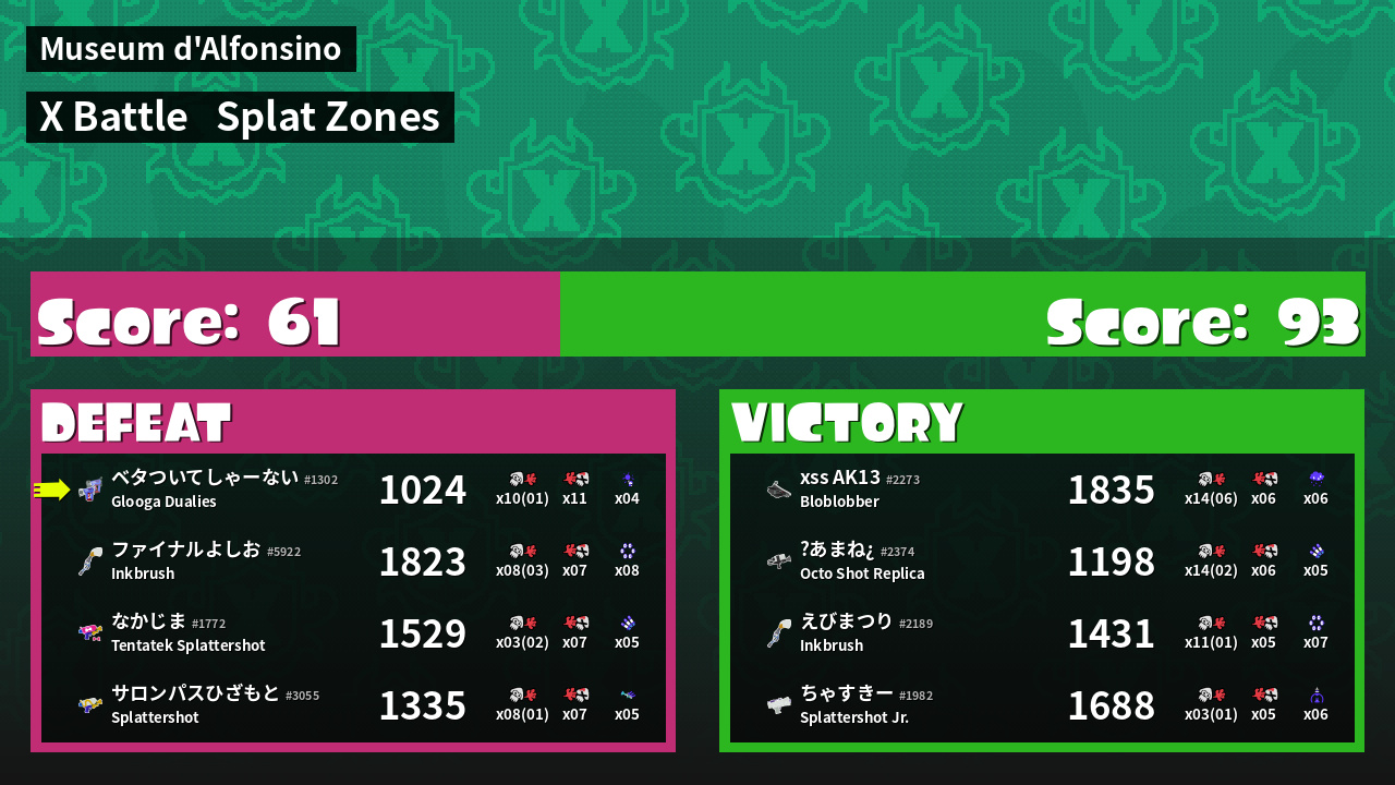 | Medals | #1 Overall Splatter #1 Splat Zone Guard #1 Popular Target | ||