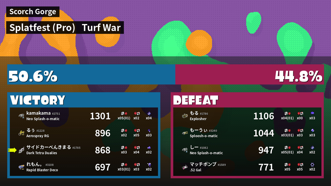| Mode | Turf War - Splatfest (Pro) | ||