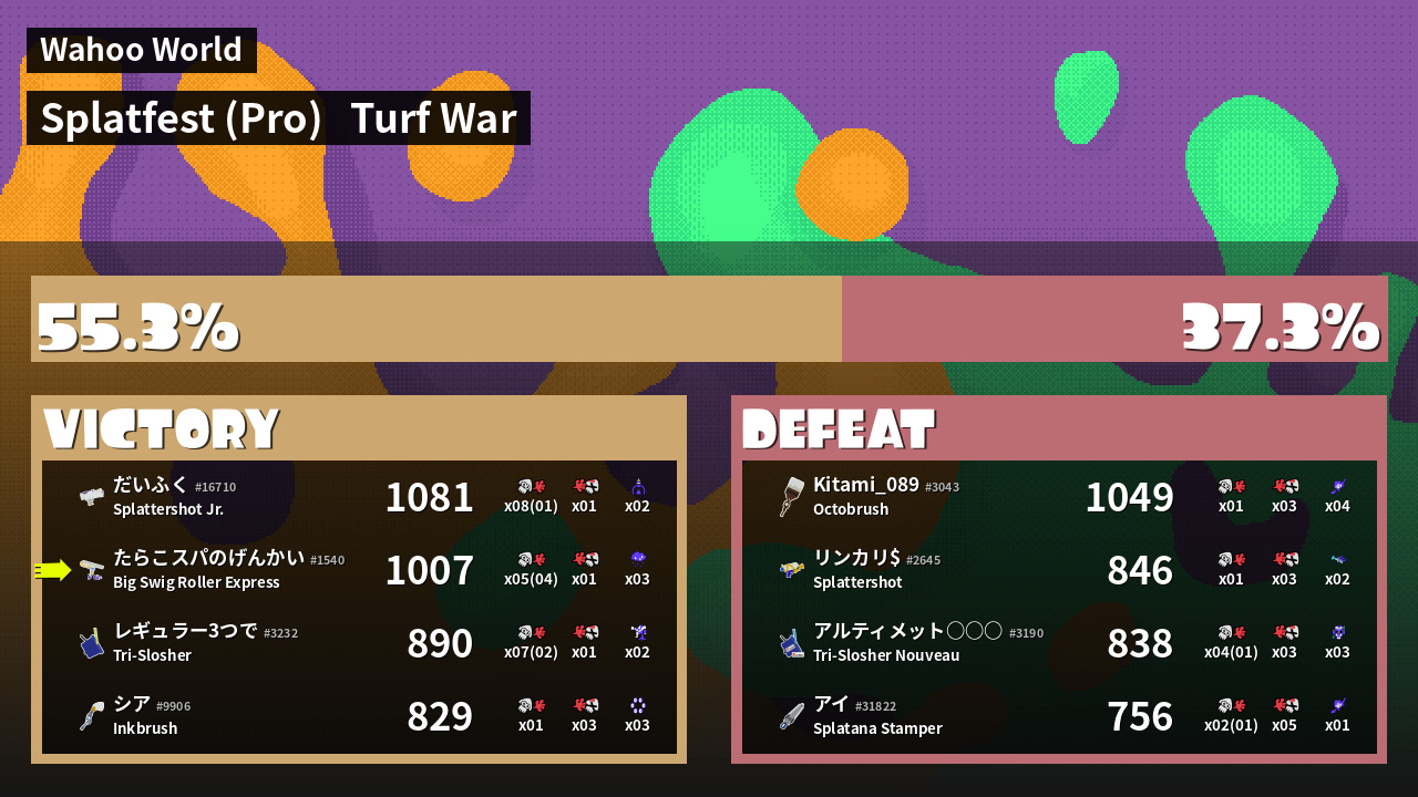 | Mode | Turf War - Splatfest (Pro) | ||