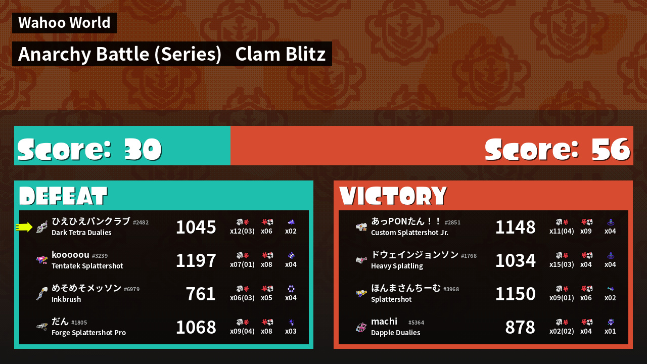 | Mode | Clam Blitz - Anarchy Battle (Series) | ||