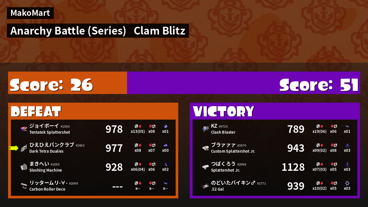 | Mode | Clam Blitz - Anarchy Battle (Series) | ||