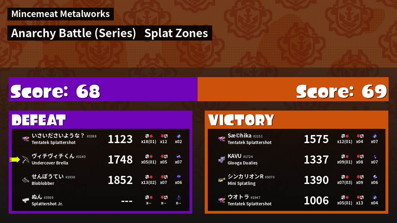 | Mode | Splat Zones - Anarchy Battle (Series) | ||