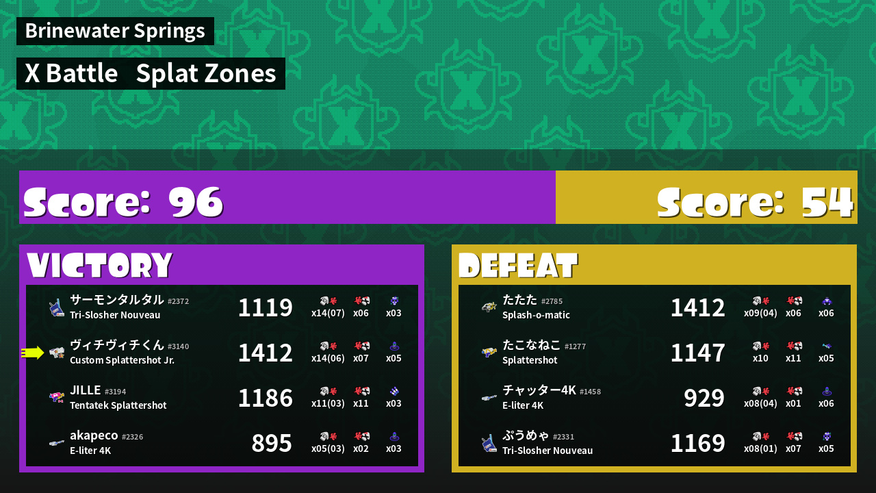 | Mode | Splat Zones - X Battle | ||