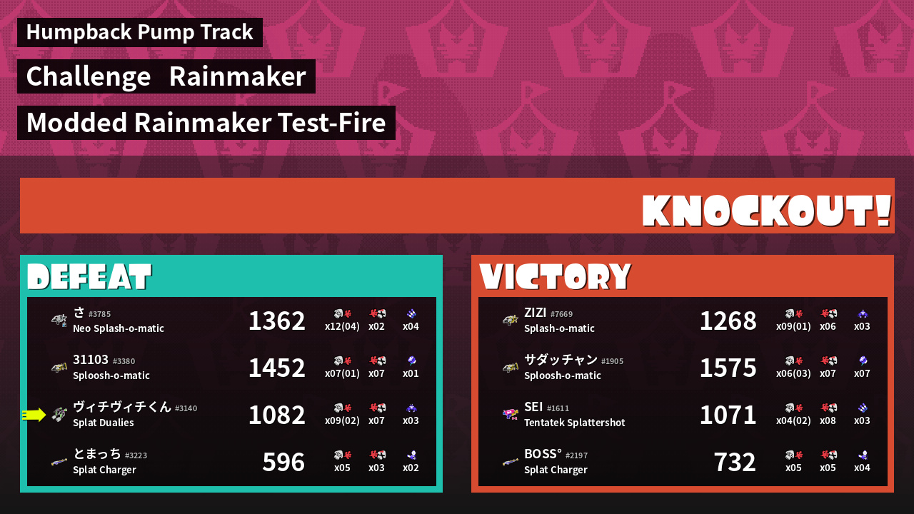 | Medals | #1 Popular Target First Splat! #2 Overall Splatter | ||
