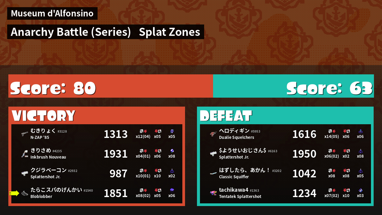 | Mode | Splat Zones - Anarchy Battle (Series) | ||