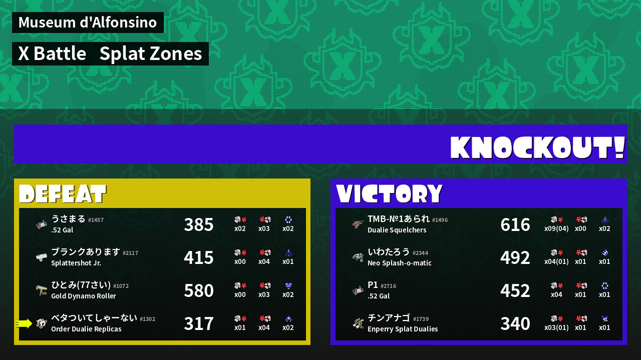 | Mode | Splat Zones - X Battle | ||