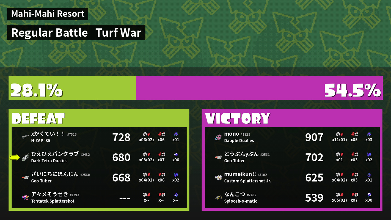 | Mode | Turf War - Regular Battle | ||