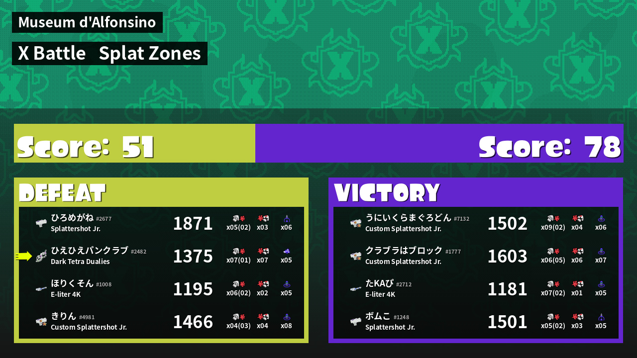 | Mode | Splat Zones - X Battle | ||