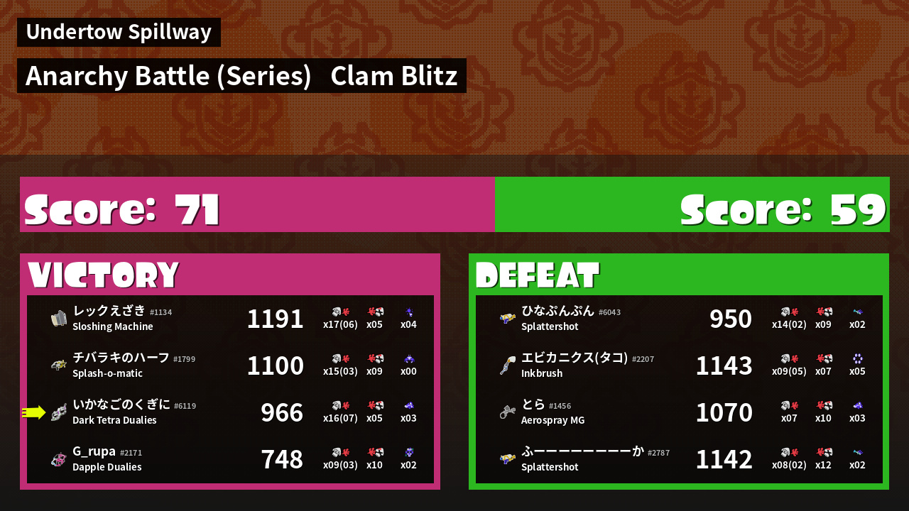 | Mode | Clam Blitz - Anarchy Battle (Series) | ||