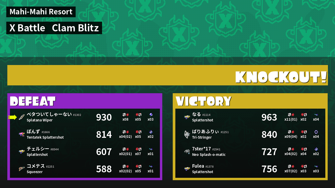 | Mode | Clam Blitz - X Battle | ||