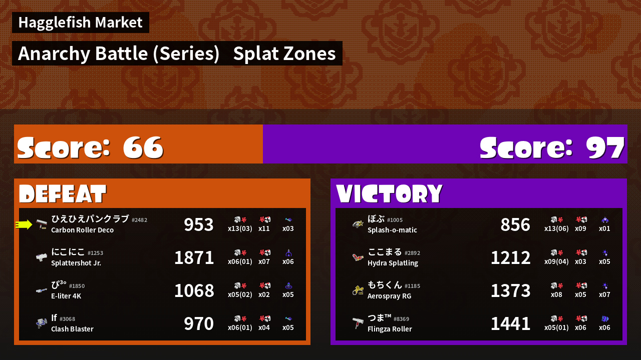 | Mode | Splat Zones - Anarchy Battle (Series) | ||