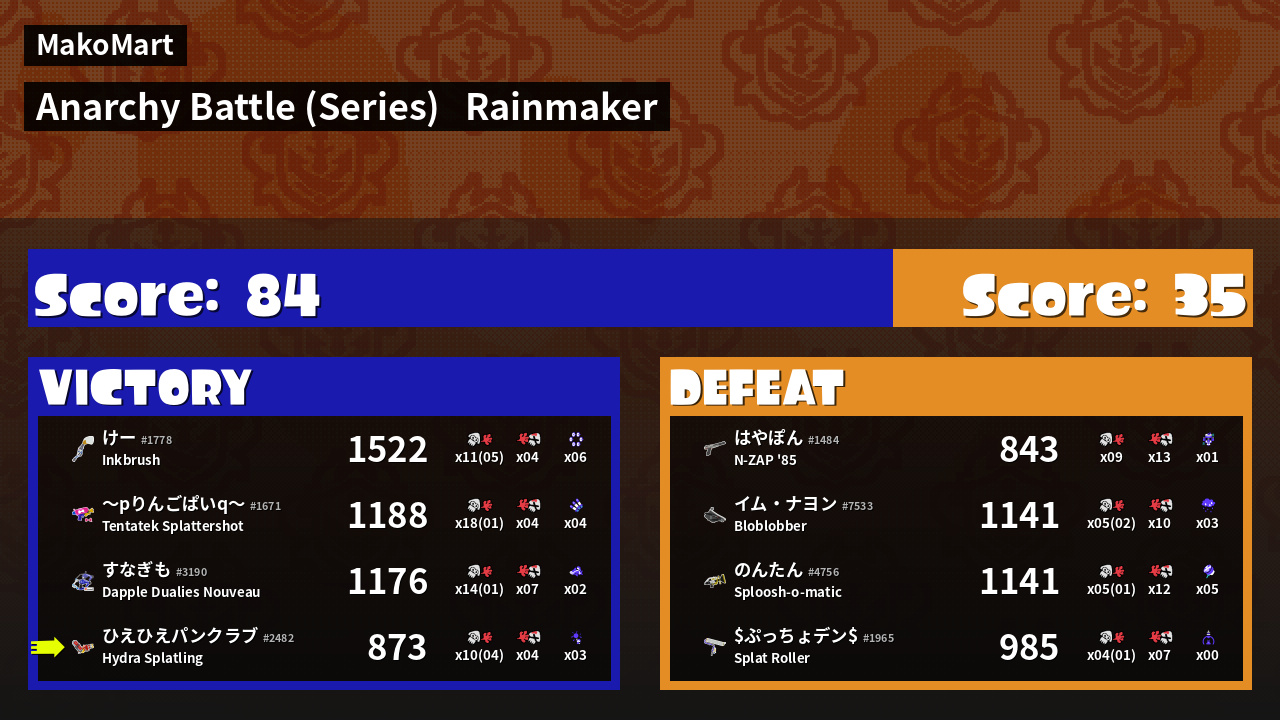 | Mode | Rainmaker - Anarchy Battle (Series) | ||