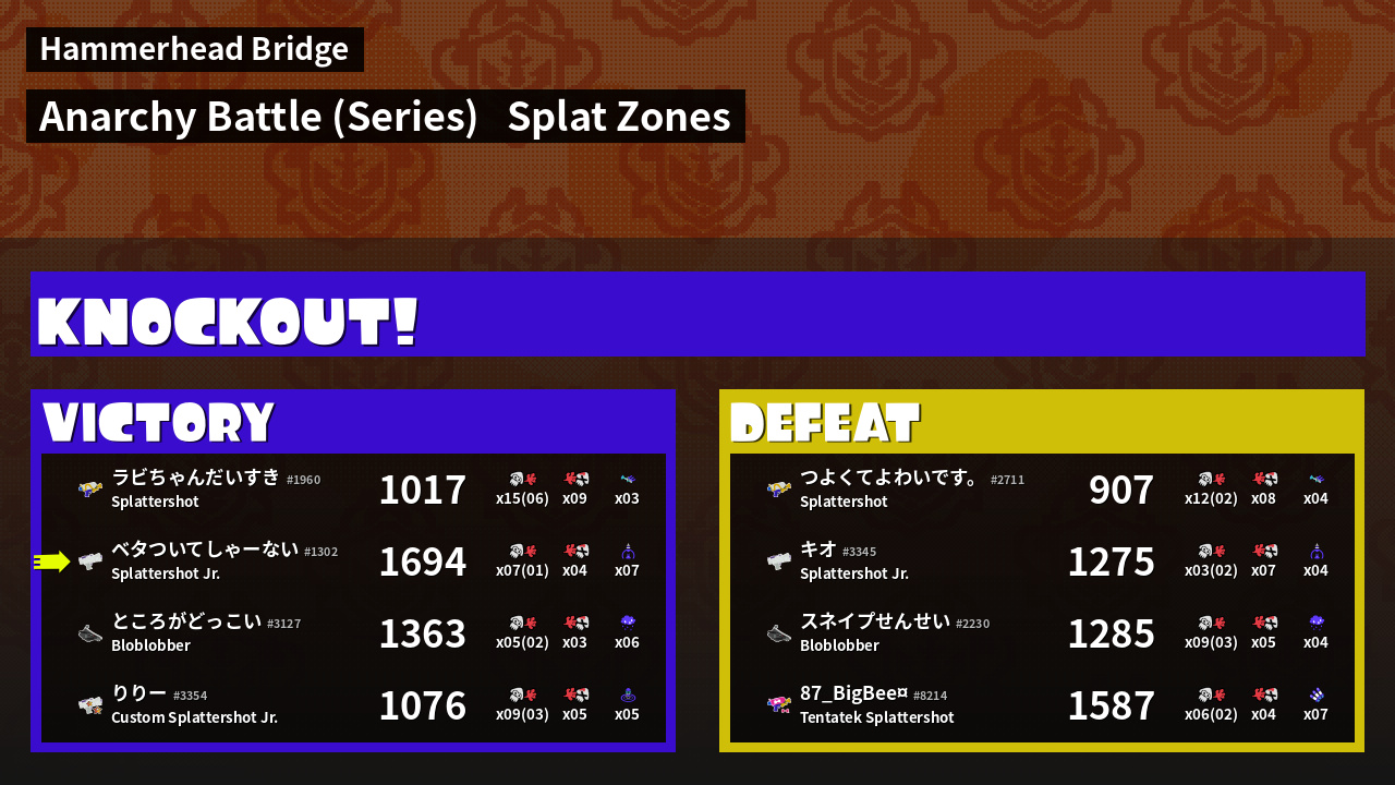 | Mode | Splat Zones - Anarchy Battle (Series) | ||