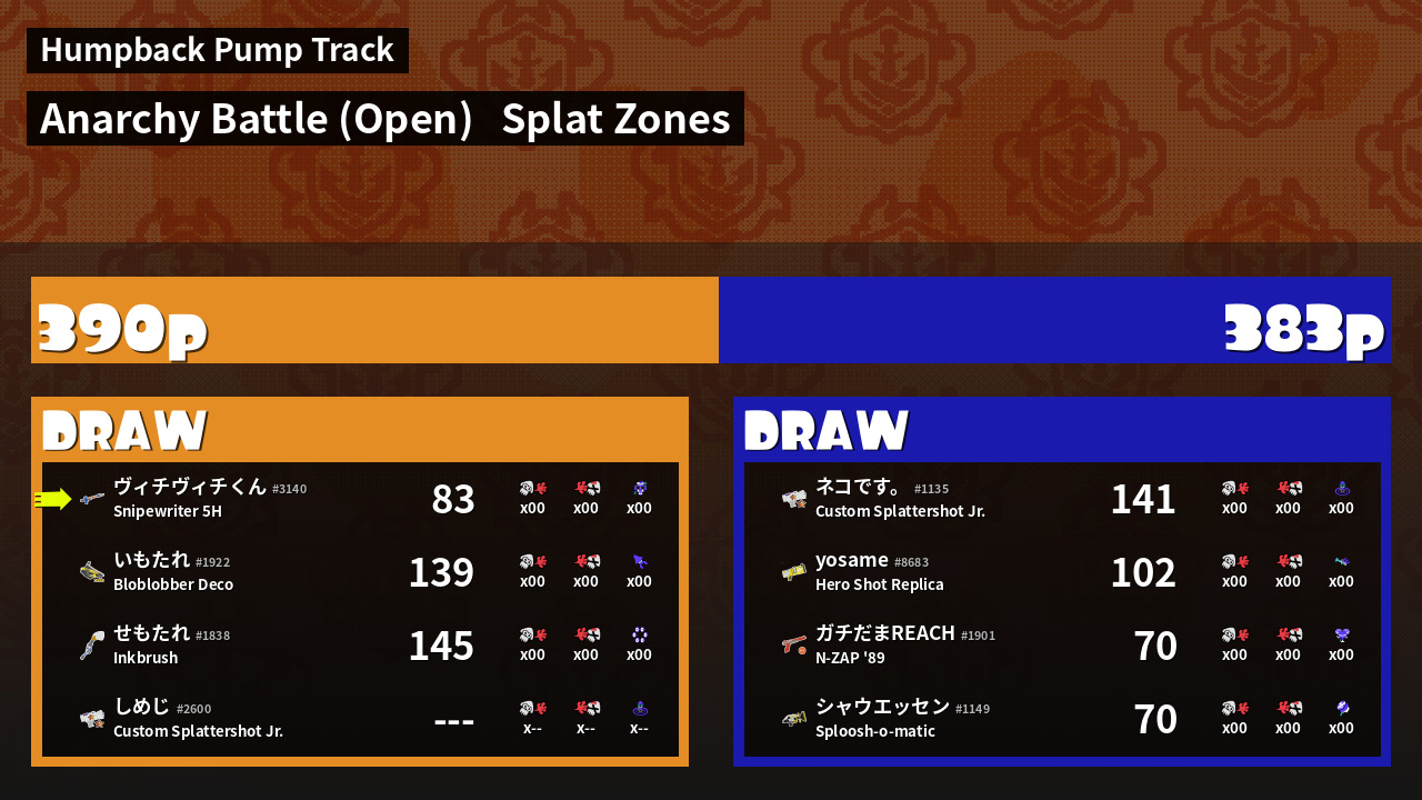 | Mode | Splat Zones - Anarchy Battle (Open) | ||