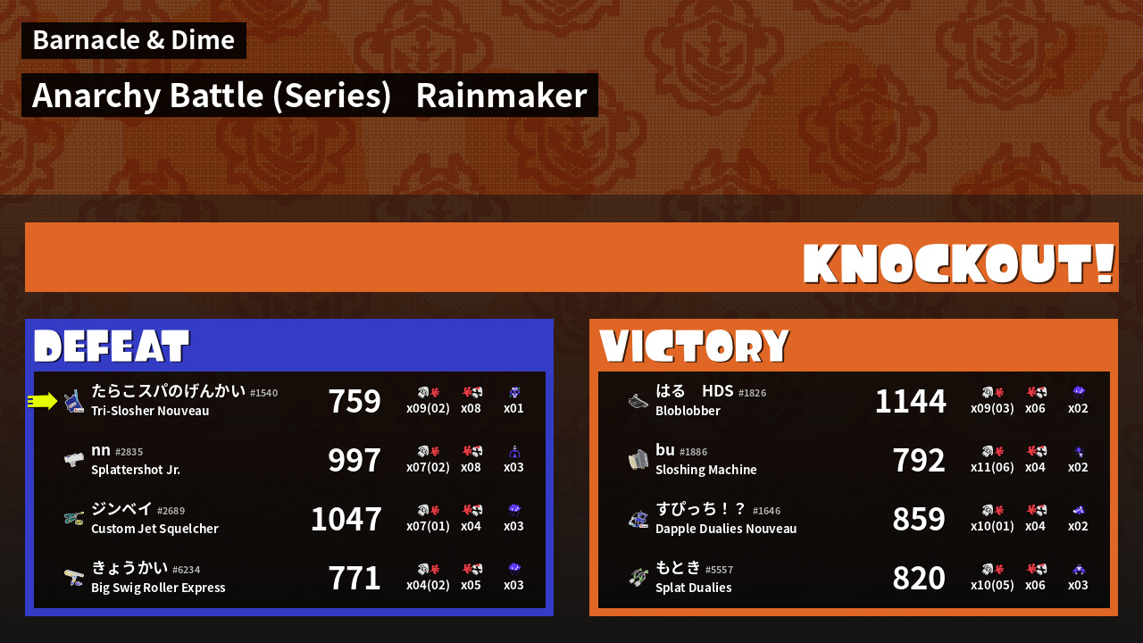 | Weapon | Tri-Slosher Nouveau ( Fizzy Bomb / Tacticooler) | ||