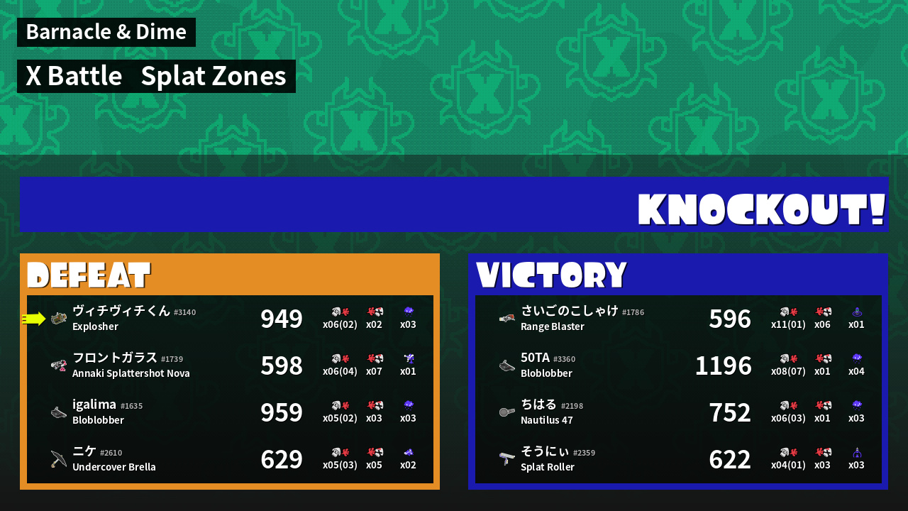 | Medals | #1 Overall Splatter #1 Splat Zone Inker #1 Splat Zone Guard | ||